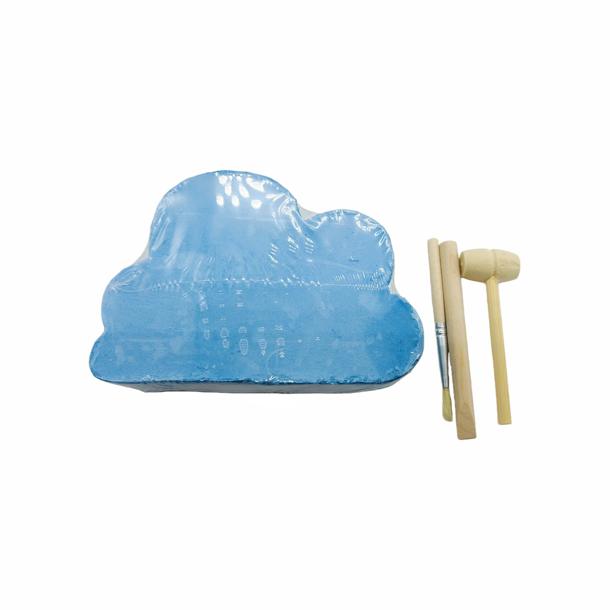This fossil dig kit shaped like a blue cloud allows you to explore and uncover hidden fossils using the included tools. It offers a hands-on learning experience suitable for all ages.