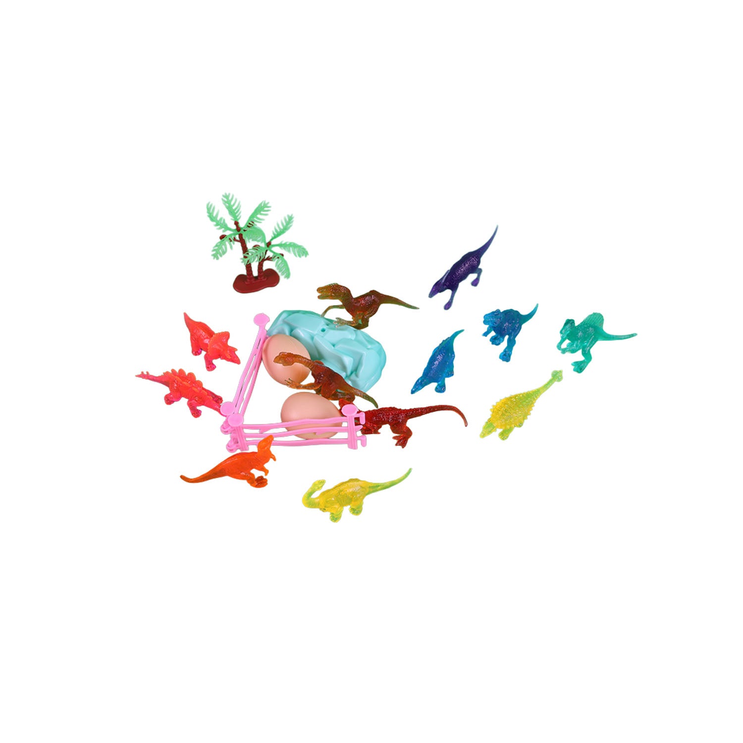 Each tube contains a variety of colorful dinosaurs, eggs, trees, and fences — perfect for sparking creativity and imaginative play.