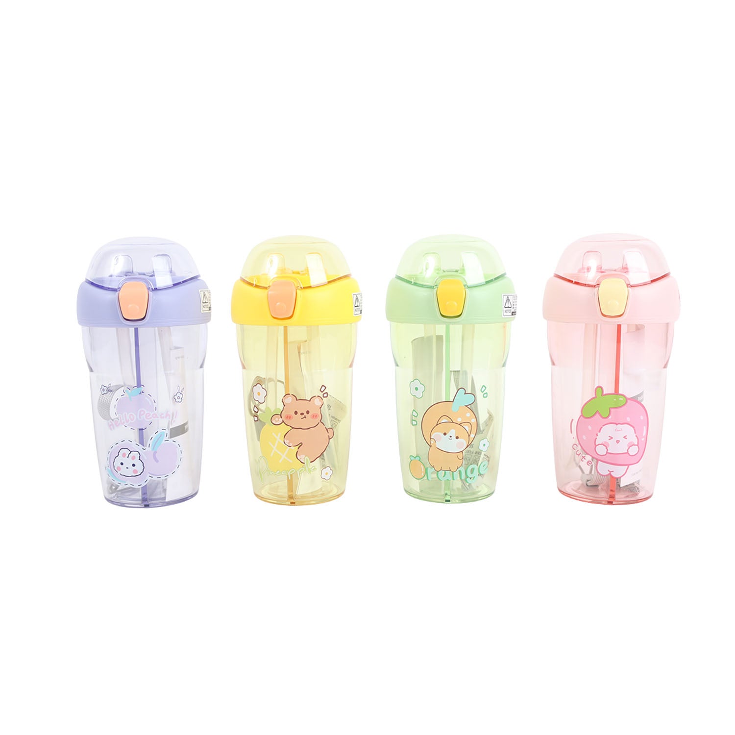 كوب سيبي بلاستيك بسعة 430 مل بتصميم عملي للأطفال، مزود بفتحتين للشرب لتوفير تجربة سهلة ومريحة. مصنوع من بلاستيك آمن وخفيف، مع غطاء محكم يساعد على تقليل الانسكاب أثناء الاستخدام اليومي. مثالي للماء، العصائر، والمشروبات الباردة في المنزل، المدرسة، أو أثناء الخروج.
