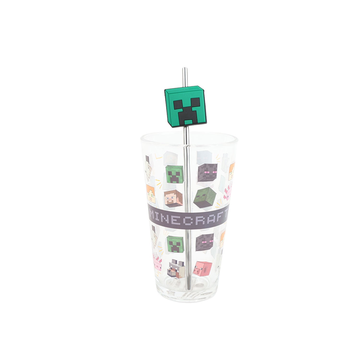 Enjoy your favorite drinks in gaming style with the Minecraft Glass Tumbler with Twin Straw Set – 480ml.