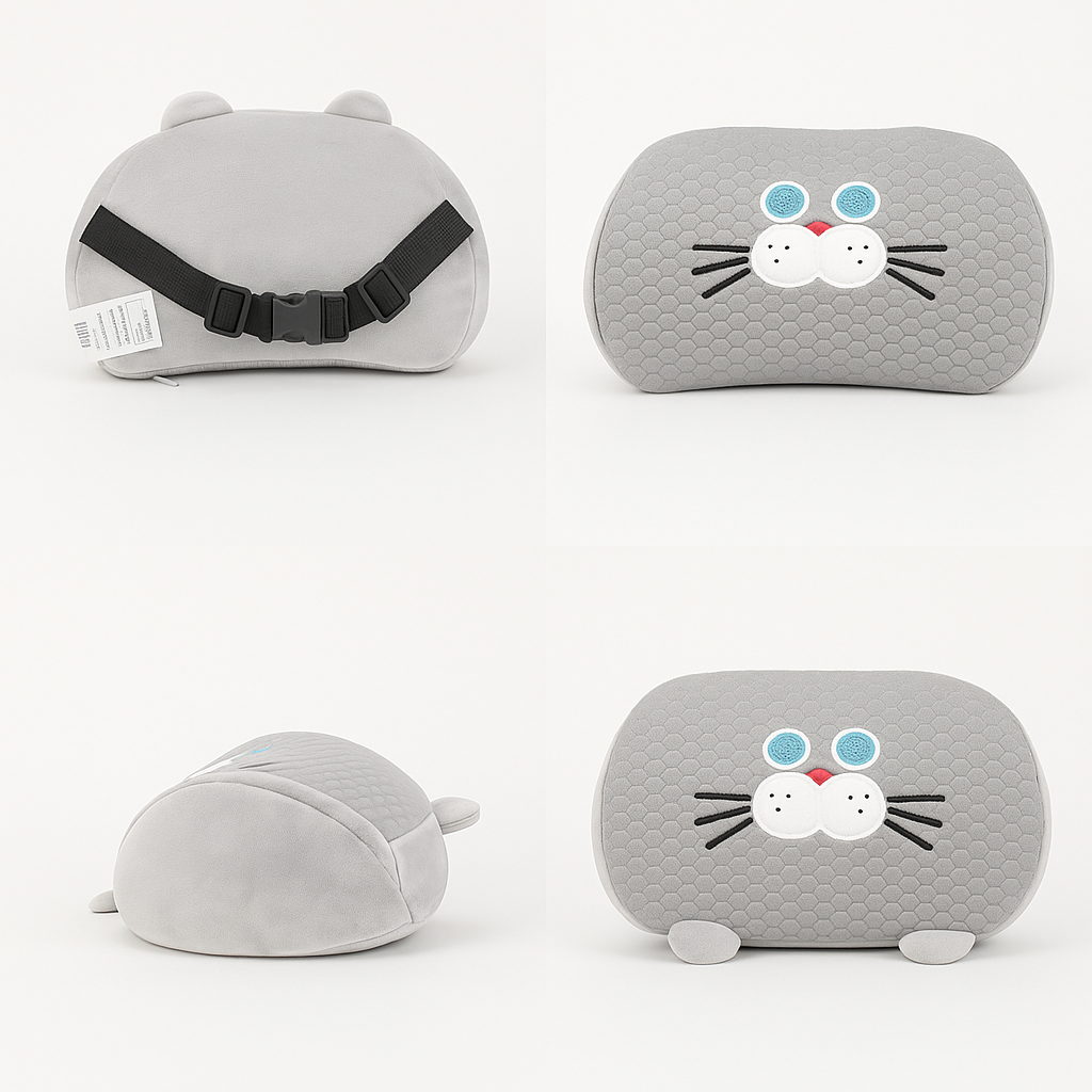 مسند رأس رمادي للسيارة - تصميم قطة لطيفة