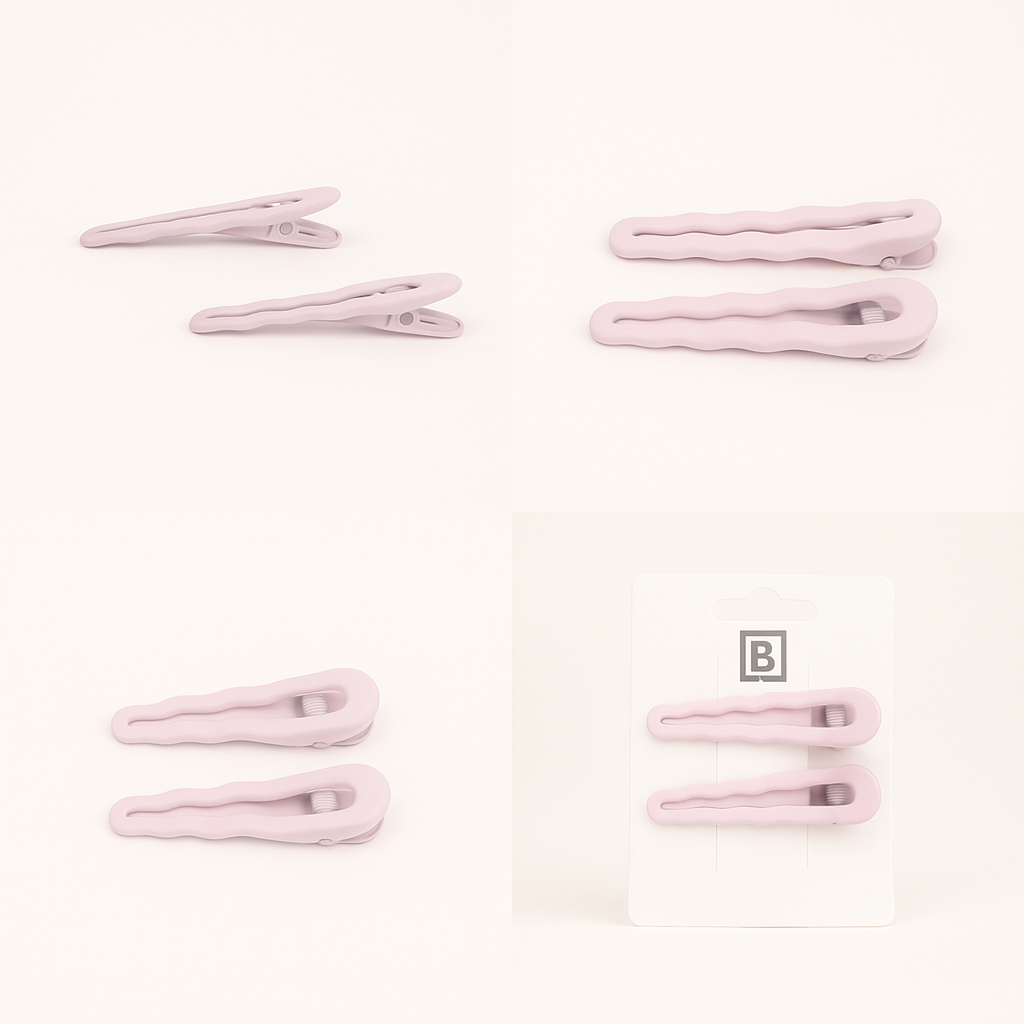 • مشابك شعر أنيقة بلون وردي هادئ.