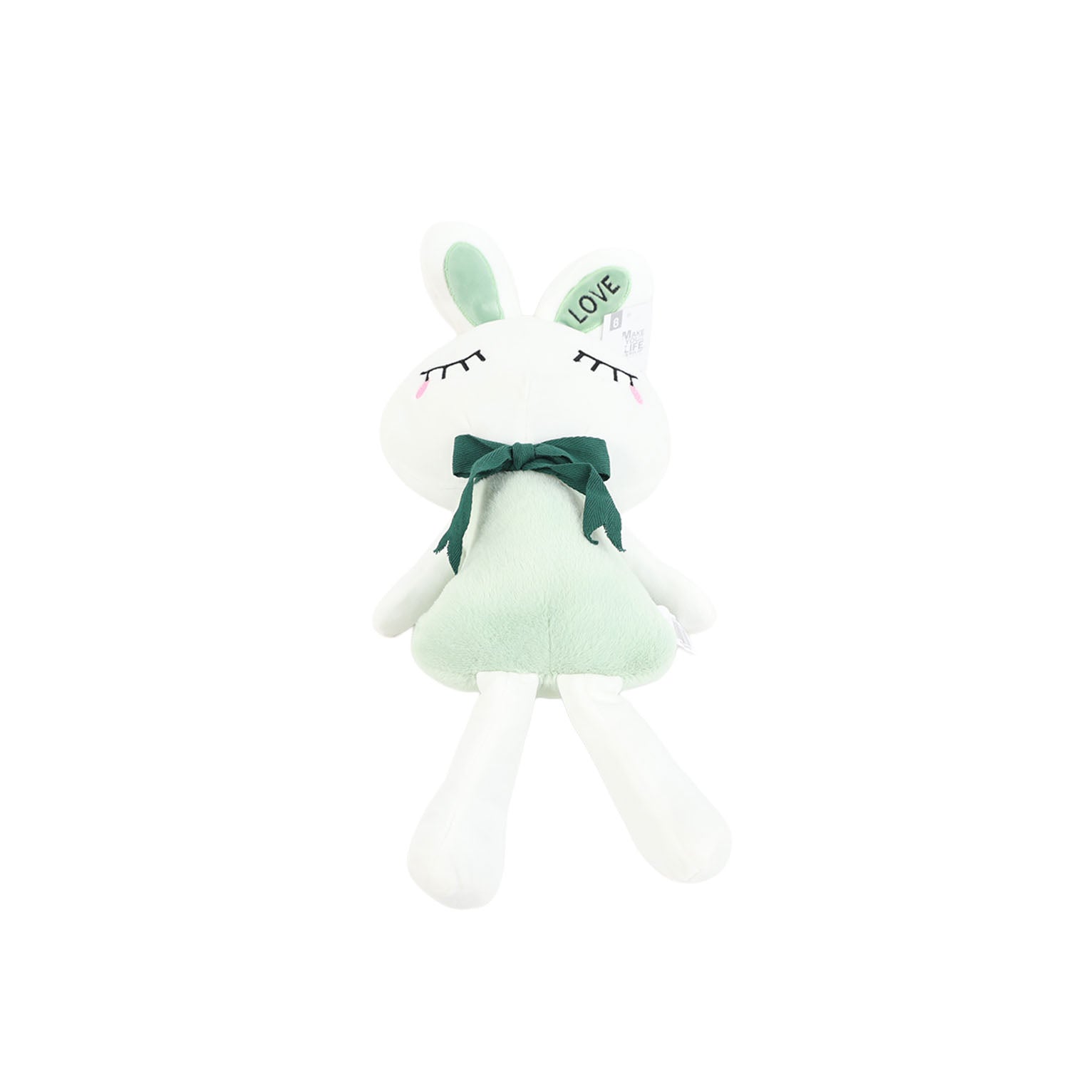 أضيفي لمسة من الجمال والدفء إلى يومك مع دمية أرنب محشوة ناعمة، بحجم 52×17 سم، مصنوعة من قماش فائق النعومة آمن على البشرة. تتميز بتصميم لطيف بعيون مغلقة وزي باللون الأخضر مع فيونكة أنيقة.